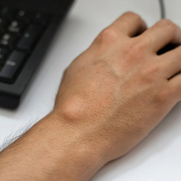Es la tumoración benigna más frecuente en tendones o articulaciones de la mano y la muñeca. Suele tener contenido líquido, puede aumentar o reducir su tamaño y, según la localización, provocar dolor o molestias con ciertos movimientos; en otras ocasiones solo preocupa por estética o por la sensación de “masa”.